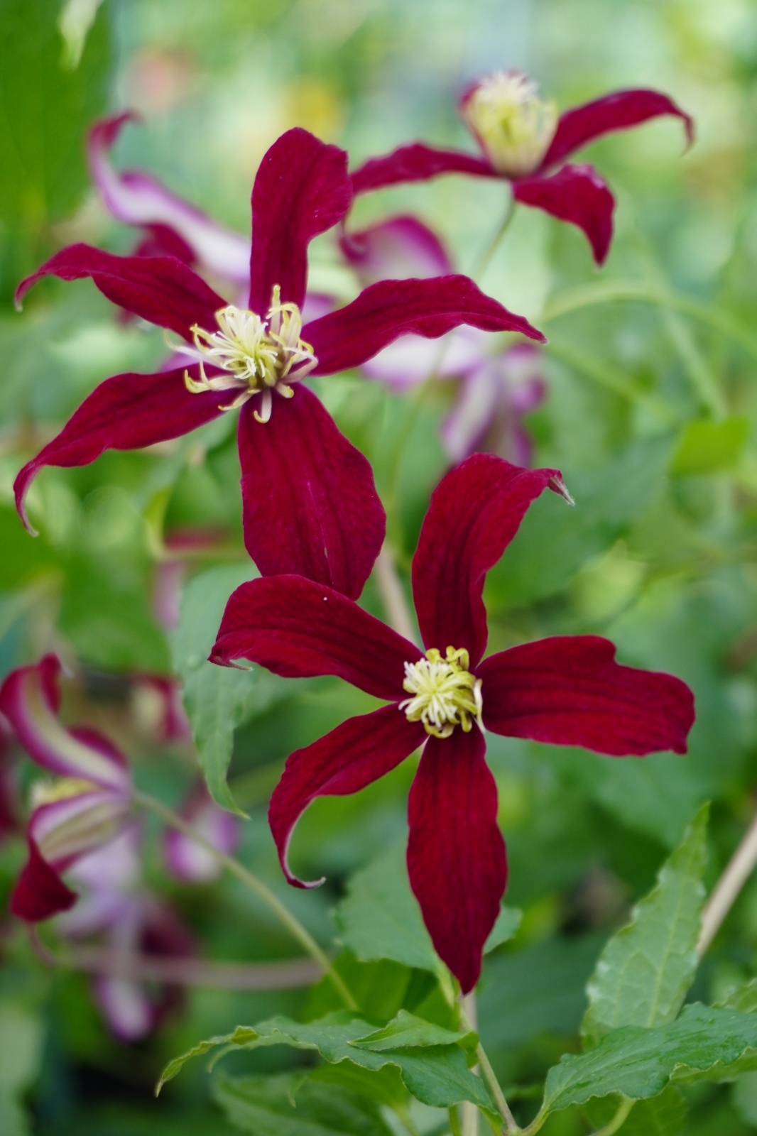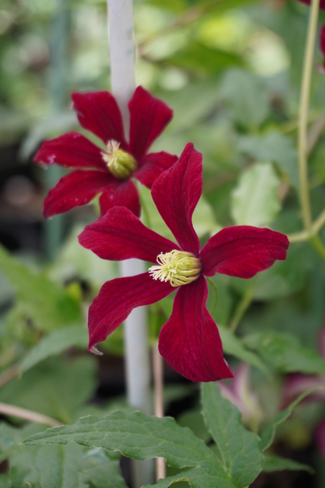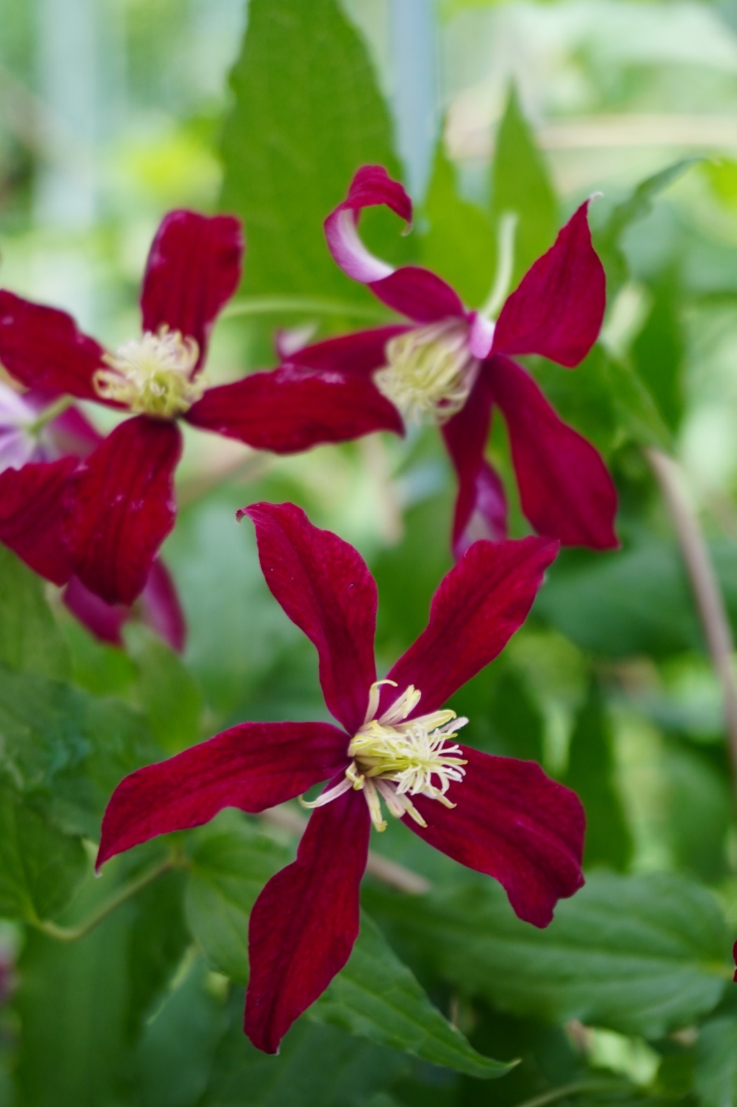 深紅に近い赤でクレマチスの中でも珍しい色が魅了